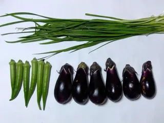 今日の収穫 きよはナスが沢山収穫出来ました😊🎶お友達にお裾分けしました😉💕🎵ニラは今日のスープに入れたいと思います😋💕昨日もナスとオクラが収穫出来ました😊