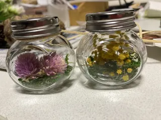 地元のイベントに参加してきました🎪かわいくドライフラワー飾ってあったので、ちょっと真似してみました~🍀革紐も付けたので、ぶらさげてみようと思います😊