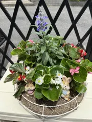 ベゴニアリース ベゴニアリースにうさぎちゃんの置き物と真ん中にサルビアを入れてみました。 うさぎちゃんを置いただけでも可愛い感じになりました。