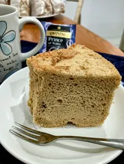 今日の紅茶シフォンは「Price of Wales」 今日の紅茶シフォンも上手く焼けたみたいです。ただ、逆さ放置期間が長すぎて乾燥が進み、外側が少し崩れたみたいです。前夜に焼いて、朝✂️。エアコンの影響もあるかも。ベタつかないかわりにパサパサも嫌ですよね!ガンバ✊今日のシフォンは少し上品な味、香り?がしました。紅茶は煮出すよりすり潰して入れる方がいいの