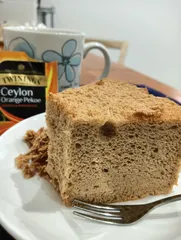 紅茶シフォン焼きました。この断面、目標達成かしら❓ 昨夜焼いたシフォンケーキでお茶してます。😋 TVドラマで気になってた「オレンジ•ペコ」息子のお土産です。紅茶を煮出して焼いたオレンジペコケーキをペコ紅茶で。焼き上がった時も良い香りでしたが、紅茶と一緒だとより香り高いです。このほわほわは私的過去最高かも。\(^o^)/置いてる間にベトってならないよう
