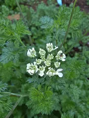 もう咲いたの〜😲 今日も雨☔?ーと庭を見たら、もうオルレアが咲いてました😲咲きはじめのようでまだ花びらが広がって咲いてません。苗が他よりも大きいから早々に咲いたのかな~😅バラが咲くのはまだだよ〜😆桃の花も咲いてました😊花びらが少し散り始めてて、きれいに咲いているうちに見られて良かった😊 ☔がポツポツしてまし