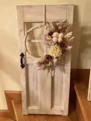 月一プリザのレッスンで、リースを作ってきました〜ミニドアオブジェに掛けたら、雰囲気ぴったりでめちゃ素敵です😊