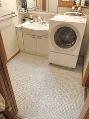 自己流DIY 洗面所編 ① 昨年春のDIYです。築25年の洗面所、すっかり汚くなった床にはそれまで足元マットを敷いて隠していましたがもう限界……そこでカインズで購入したクッションフロアを貼ってみました。なにせはじめてのこと、手順もわからずYouTubeを参考にしながらでしたが、なかなかきれいに仕上がって明るい空間になったと思い