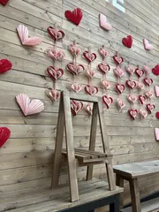 フラワースタンド2個目 かわいいバレンタインオブジェの前で撮らせてもらいました。どんなステンシルをしようか考え中です。