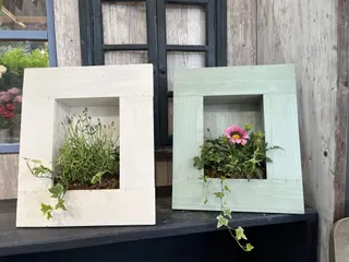 シンプルに ワークショップで娘と作ったフラワーフレームに植えてきました