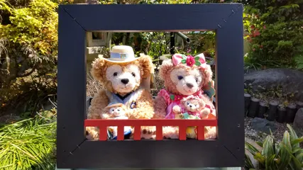 スタンド型フラワーフレーム 縁は黒、柵は赤で😄🌊🐻の初期のssサイズを中に入れて記念写真😄今月🌊に行って🐻買うまでこの🐻を入れて😁こう見ると次回、フレームの色は違う色がいいな〜😓とちょっと反省😢やっぱりこの色は、こっちの🐭さん達の方が、しっくり来るかな〜😁