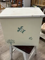 ベンチストッカーを作りました😄 フタ付き収納BOX ベンチストッカーを作りました。蝶番の取り付け方を学びました。うまく付けられて、ホッとしました😅玄関に置こうか、何入れようか、迷い中です。