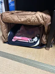 愛犬のこたつ機能付きハウス ■作品内容 短毛の為に冬場は寒くてこたつに入ってきます、そんなにこたつが好きならと、自分用のこたつを作ってあげました。■作品のこだわりポイント回りを断熱材で囲いました