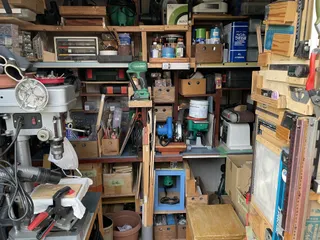 物置き内工具置き場整理と清掃 BOX2個置き場変更・ウォルナット&ホワイトオーク端材段ボール2個置き場変更・端材置き場整理・卓上ベンチワーク置き場変更・充電器置き場変更・集塵機付属品置き場変更細かい画像のアップはやめときます。