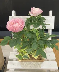 Greenワークショップで作成した、ミニ薔薇の寄植えです🌹ピンク、オレンジ、白、赤、黄色のバラがあって迷ってピンクにしました。薔薇は冬剪定しなきゃいけないけど、このミニ薔薇はどうするんだろう。このままでいいのかな❓