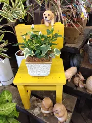 黄色の椅子に黄色バラ 元気でますね! 緑もすごく映えてる😄