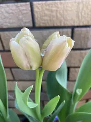 プランターで育てているチューリップ🌷なぜか、ひとつの球根から花が2つ⁉️なんで❓他のは普通なんですが、見つけた時はびっくり👀こんなこともあるんですね~😊