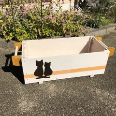 ハロウィンキャンペーン2022【2匹のネコさんのプランター】 プランター1個目できました! 今回は、「パーツキャビネットの収納箱(未掲載)」を作ろうとして、2回失敗した作品のひとつを解体して材料に使っています。外で使用するということから、カインズで購入して使わずじまいになっていたホワイトを使用。 「木目を生かすステイン仕上げ」と書いてありま