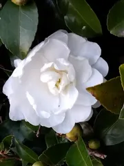 真っ白なサザンカの花綺麗ですね✨ 我が家はまだ蕾でした🎶