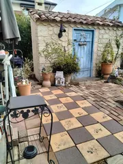 地面のなかに、お花の仕掛けがたくさんあるみたい✨素敵なお庭です💕
