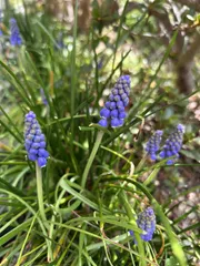 ムスカリ 殺風景なうちの庭にやっとお花が咲き出しました!!今日は寒いですが春ですね😊