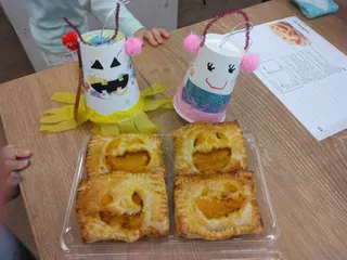 クッキングファン🎃 先日のクッキングファンは、カボチャパイとお化けランタンを作ってきました🌼娘、息子も楽しく作っていました😄🌼