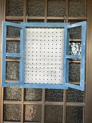 窓風飾り🪟 ダイソーの有孔ボードを使ってミモザのリースやスワッグを飾るために作りました😁ちょっと小さかったみたい😅
