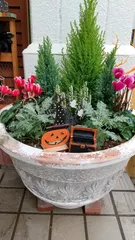 寄せ植えを作ったら、苗が足りなくてすき間が出来てしまいました😅よーし🎵ハロウィンですき間を埋めました😅