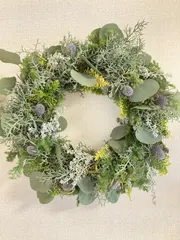 クリスマスリース🎄その2 やっとリース第2弾の葉材を購入🍀*゜ この5種類➕エリンジウム🌸左からブルーアイス(コニファー)ヒムロスギユーカリポポラスコチアクジャクヒバあと家にあったエリンジウムも使いました。 バランス見ながら足りない所に葉っぱを足していきます🌿クジャクヒバの黄色とエリンジウムのムラサキが良