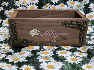 木工鉢 ■作品内容色々植えられる深めの木工鉢■こだわりポイント正面にプレゼント用オリジナル自家製ステンシル薔薇の飾り付けて華やかに水捌けよくする為に下に水抜き穴地面から少し浮かす為に木工ビーズを足に付け塗料はクミモクのウォールナットで仕上げ!