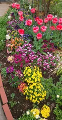 優しいお色のチューリップ 可愛いですね🌷 周りのお花も色とりどりで、春爛漫で、ウキウキしてきます🎶