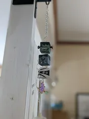 先日作ったMONSTERたちを飾る場所に困って平面がないなら空中を使おうと思いつなげてみました。一番下にはレジンを使って魔女さんも登場いただきました。