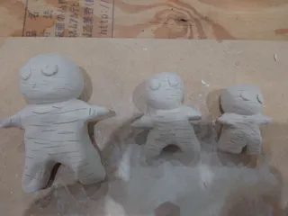 オーブン陶芸終わりました💞なんと今日は1人😲粘土は白、めちゃくちゃ硬かった😅ミイラを作ってみた、ミイラにみえるか??ミイラ大ミイラ中ミイラ小皆アップだから大きさわかんね〜😱上手く焼けるかな?