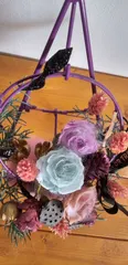 プリザーブドフラワーでハロウィン風に作ってみました。黒いリボンをコウモリ🦇に見立ててみました。