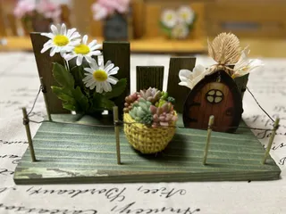 小さな多肉寄せを飾るトレー完成❗️✨ 眠っていた資材を手に取って そうだ!これはあれにいいかもー! (自分にしかわからない言葉で すみません😅) そう思ったのが午後で😅 そこから作り始めました😊 大好きな多肉寄せを飾るトレーです😊 思い立ってすぐに制作に取り掛かるには 必要な道具や資材や塗料、それに合うビス 今回は造花もなくてはなり