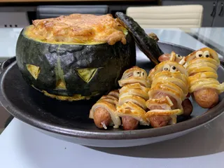 ジャックオーランタン🎃のグラタンとミイラソーセージパイ👻を作りました😋