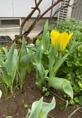 いつ頃のチューリップ🌷か、記憶にないけれど、植えっぱなしで、人工芝を敷くまでは物置と化していたプランターの中でよく辛抱してくれました💗 赤かな? 白かな? 黄色かな?