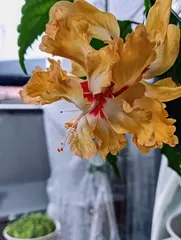 今日は3段咲きハイビスカス1輪咲きました。 一寸重そうな蕾だなと思ってたら、3段咲きでした。先日初めて同時咲きしてくれて(5輪)この後の蕾の用意がありません。いつも、控があったのになぁ🤣🤣🤣暫く休暇を取るのかな?いつも蕾あったから、一寸淋しくなります。 🙇