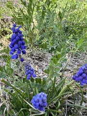 こんなところに🫢 畑の横にムスカリがたくさん咲いていました♪多分お庭をやり直した時に掘り起こしてまいた土に入っていたのかな🤔球根って、強いですよね❣️
