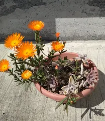 花が咲きました こちらは、手をかけてない鉢ですが、(花の名前もわかりません🤔)今日綺麗にオレンジ色の花が咲きました。もう1種類の多肉植物にも白い花が咲いてます。
