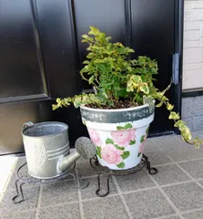 植え替え 以前、GWでブリキのジョロに植えたミニバラとアイビーが葉がモリモリになり、風通しが悪くなってしまいました。昨年やはりGWで作った鉢植えが丁度空だったので、植え替えました。少しバラの葉も切って、風通しを良くしました。よく見ると蕾も付いていたので、手をかけて見守っていきたいと思います。🌹