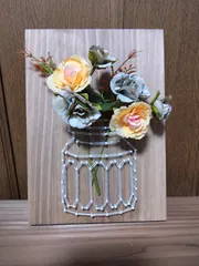 ストリングアート 花瓶 作ってから飾ってなかったので、今日100均で造花を買い、飾りました。