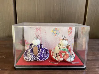 吊るし飾りの雛人形❣️① 今日は,大安❗️雛人形🎎を出しました。昨年,近くで,講座があり吊るし飾りの雛人形を作りました。ケースは,100均のもの。中に千代紙で,飾りを作っておさめました❣️