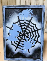 セリアで買ってきた額縁にクモとコウモリのステンシルをしました🕷🦇✨制作時間 1時間材料費 税込110円
