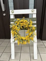 ミモザリース お友達のお宅のミモザを剪定してリースにしました🥰