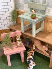 並べたら… ダブルワークで作ったチェア 2個並べて記念撮影📷 うさぎ🐇さんとねこ🐈ちゃんがいっぱい😆💕