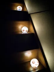 スリコのムーンライトにカボチャのペーパーを貼りましたが、置き場所に悩み、階段の隅に足元ライトとして飾ってみました😊ライトをつけると失敗箇所が隠せます🤣💦