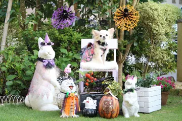ワンちゃん主役に、ハロウィンパーティー記念撮影。すてきですね(〃∇〃人)