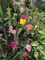 チューリップ カインズさんで、お買い得になったチューリップ🌷ムスカリの球根、沢山の花を咲かせてくれました😊これから咲く、原種のチューリップ、咲くのが楽しみです🤗