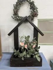 巣箱風飾りプランター 巣箱風飾りプランターを作ってきました😊汚し過ぎたので、落ち込み😨家に帰って、塗り直しましだ‼️庭の木に付けようと思いましたが、暫く、家の中で飾ろうと思います😅