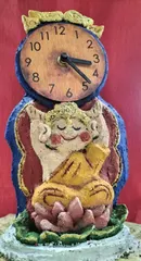 お釈迦様が好きな主人の🎁につちだまでお釈迦様の⏰を作ってみました🫡 1人では不安だったので、先生の工房で作ってきました! 途中、ダルシムになったり、鉄腕アトムになったりドラえもんになったり🤣1人で大騒動😵💫🙌先生は大爆笑🤣なんとか満足のいく⏰が完成しました〜✌️😆 最