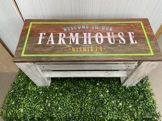シャルフベンチ 木目を出したかったので、今回は、地は茶系で文字を色味にしました。