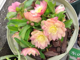 クリスマスローズ「アプリコットジェラート」 今年のアプリコットジェラートは、たくさん蕾が付いたのですが、かなり低い位置で咲き始めてしまいました。数日後、少しだけ茎が伸び、色が濃くなってピンクになってきました🩷どちらの色もかわいいです❣️