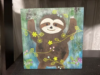 以前作ったミニサインボード:変わった色で挑戦したのですが、どうもしっくりこなくてお蔵入りだったのですが、この度別物に変身させました。B&Bはポップな感じが私的には好きです😊遊び過ぎ(ゴテゴテ)ですが森の中にいるイメージでデコパージュやシールを貼ってみました。どっちが正解か?わかりません(困っ